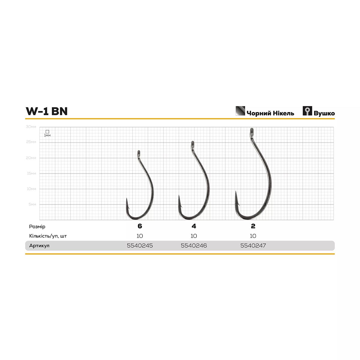 Гачок Hayabusa Carp W-1 BN - Чорний нікель - 10 шт/уп