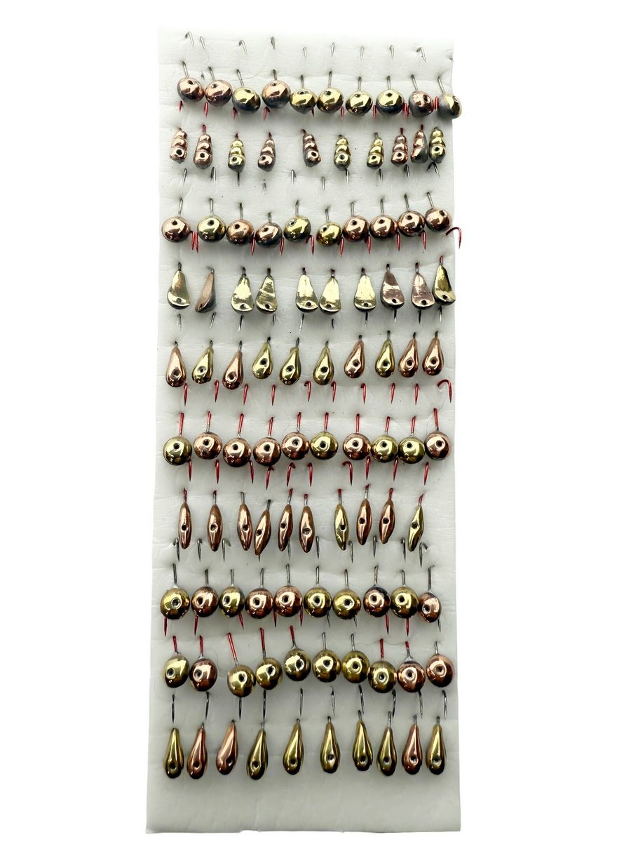 В асортименті представлені найбільш уловисті форми — дріб, гусениця, крапля, човник та вівсянка, які підходять для різних умов лову, глибин та активності риби. Класичні кольори золото та мідь чудово працюють як у похмуру погоду, так і при слабкому освітленні під льодом.
