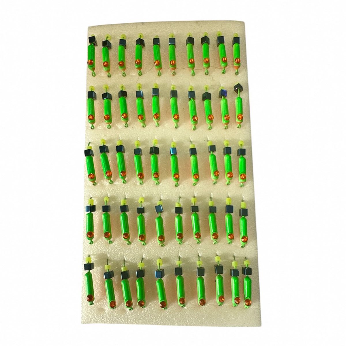 Мормишка Вольфрамова "Латишка" Гвоздик - Котяче око з кубиком блакитний - Ø2,2 мм - 0,5 г - Зелено-червоне - Латвія