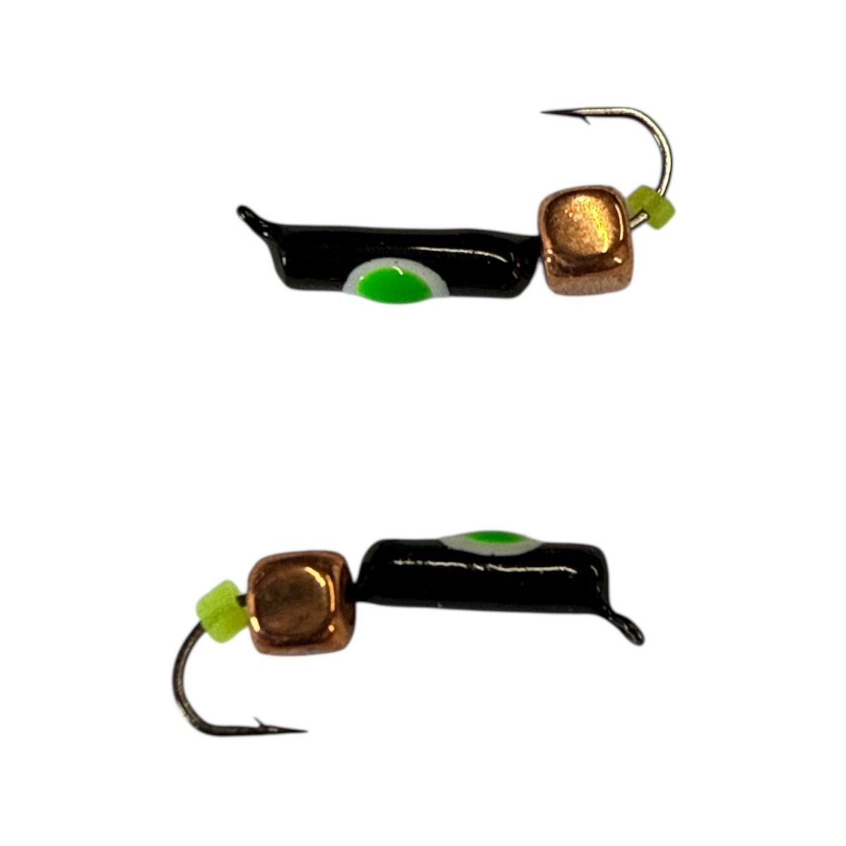 - Мормишка Гвоздик з кубиком працює за тим же принципом, що і з металевою кулькою або намистиною, тільки замість кульки на цівці гачка встановлений металевий куб. Уловистість цієї мормишки така сама, як і у мормишки з кулькою.