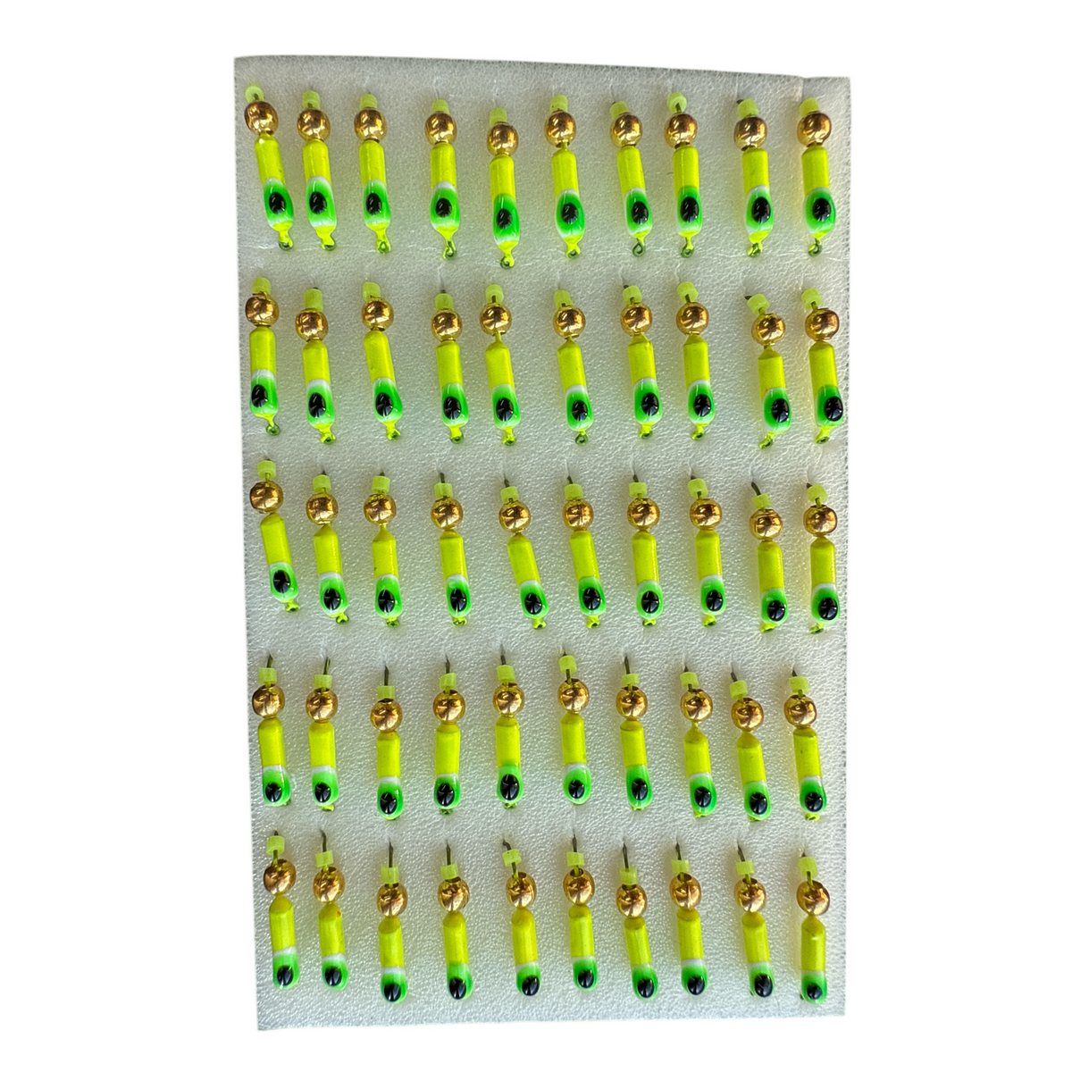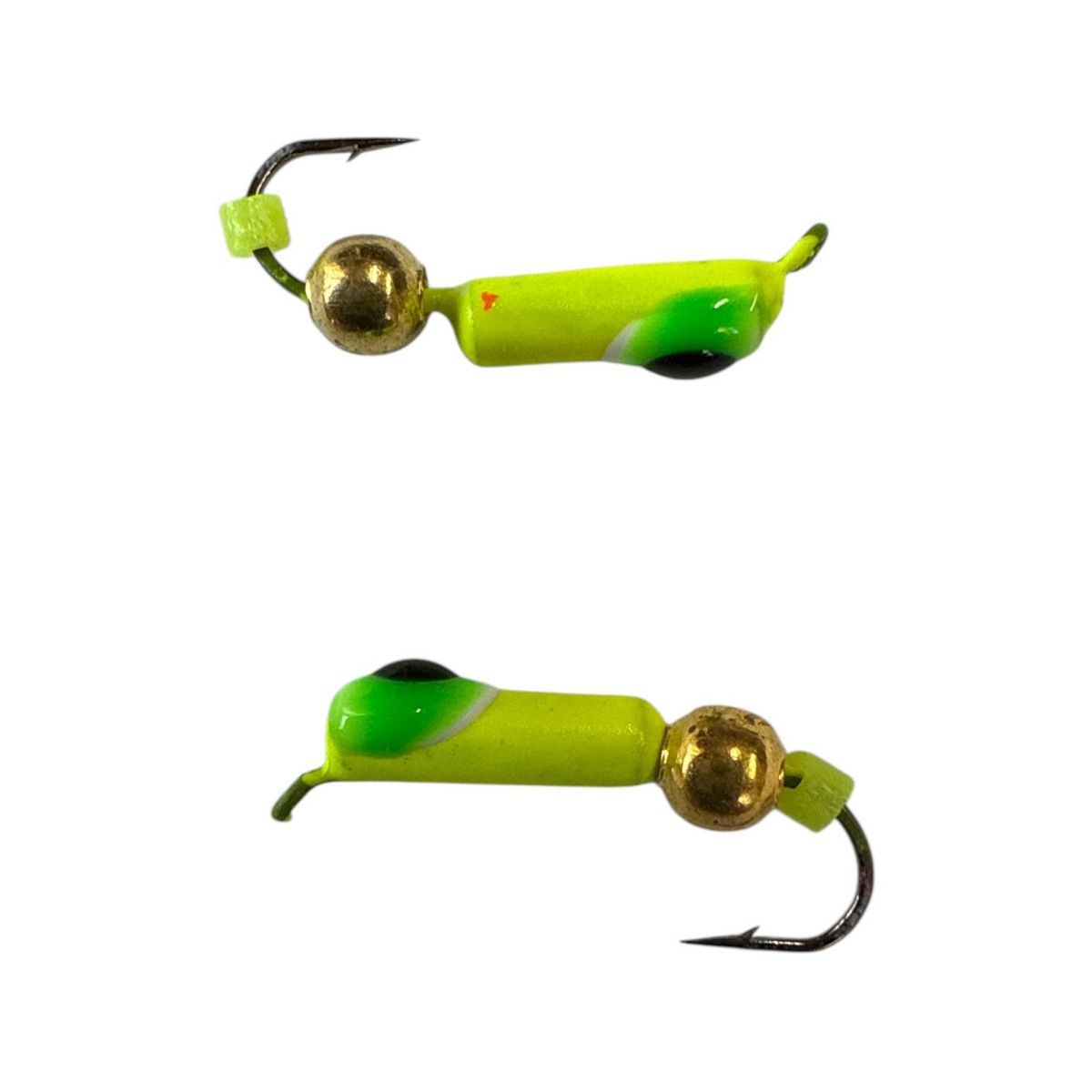 Мормишка Вольфрамова "Латишка" Гвоздик - З кулькою золото - Ø2,4 мм - 0,5 г - Жовтий із зелено-чорною крапкою - Латвія