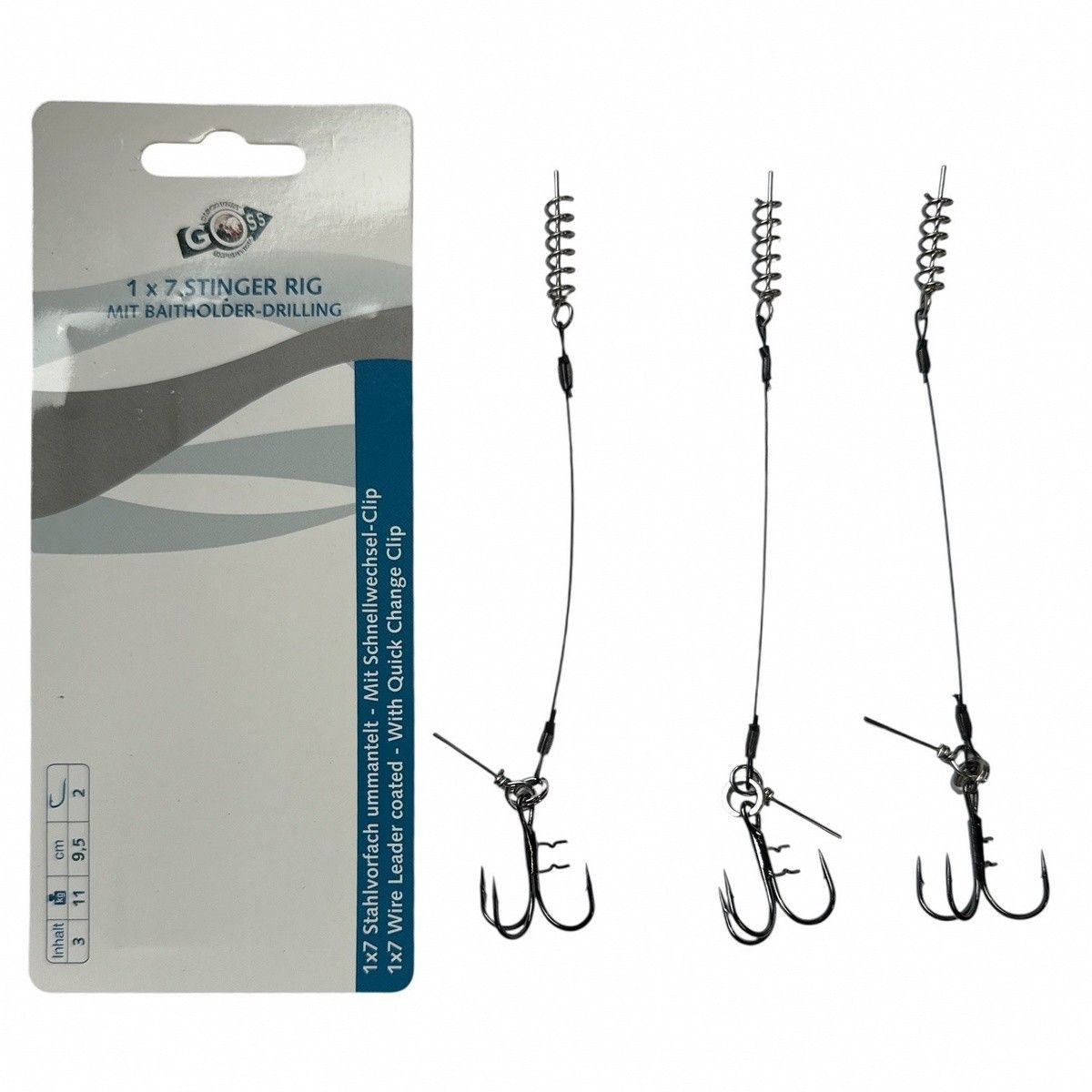 Повідець Goss для оснастки силікону Stinger Rig 1x7 - 9,5 см - Трійник №2 - 11 кг - 3 шт/уп