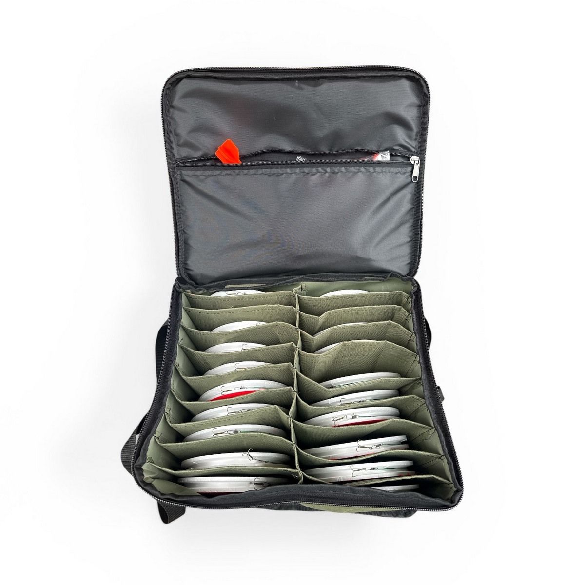 Кружки рыболовные - Оснащенные - Усиленные (тройник) - 20 штук + Сумка Хаки