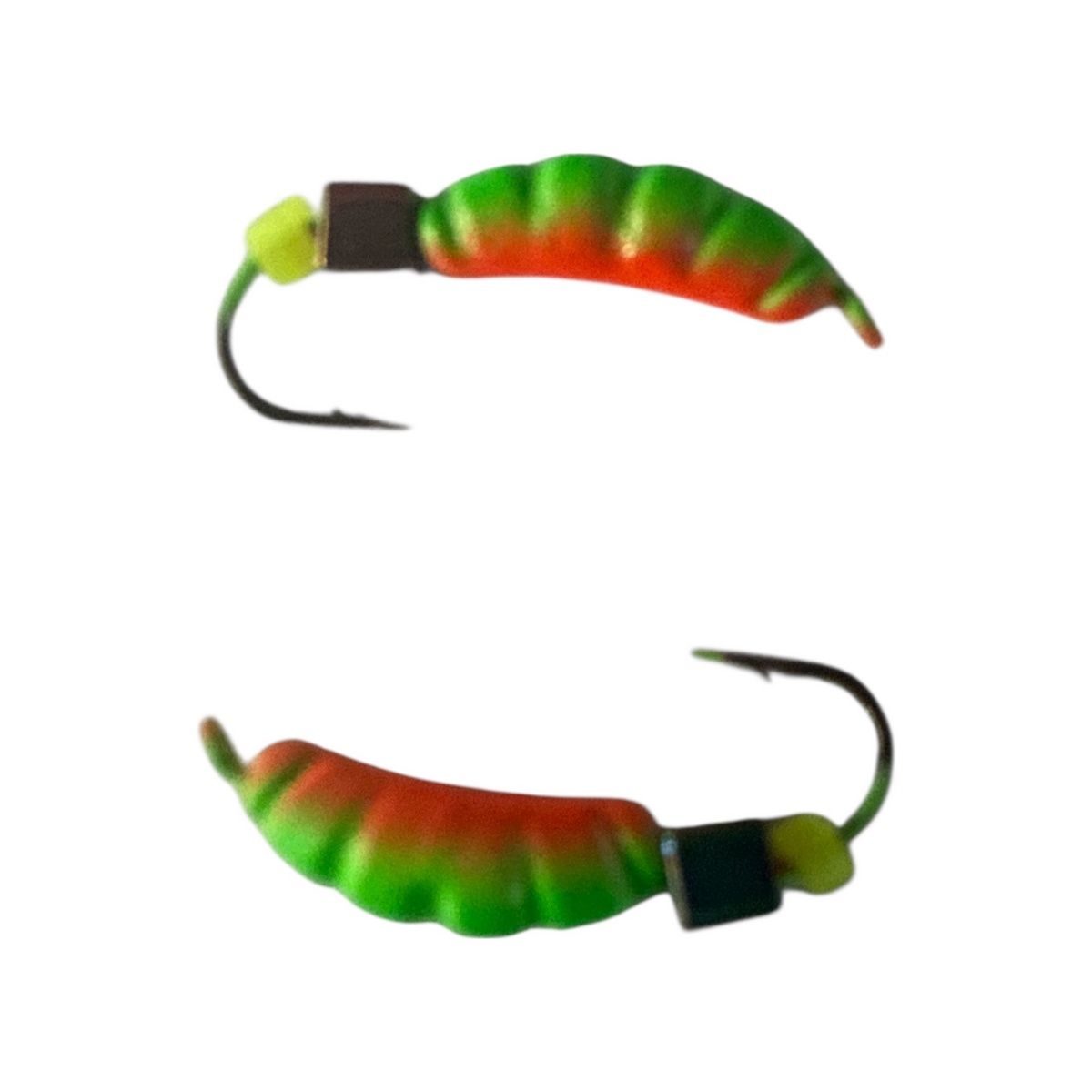 Мормышка Вольфрамовая "Латышка" Личинка опарыша - С кубиком хамелеон - Ø2,7 мм - 0,6 г - Зелено-красный - Латвия