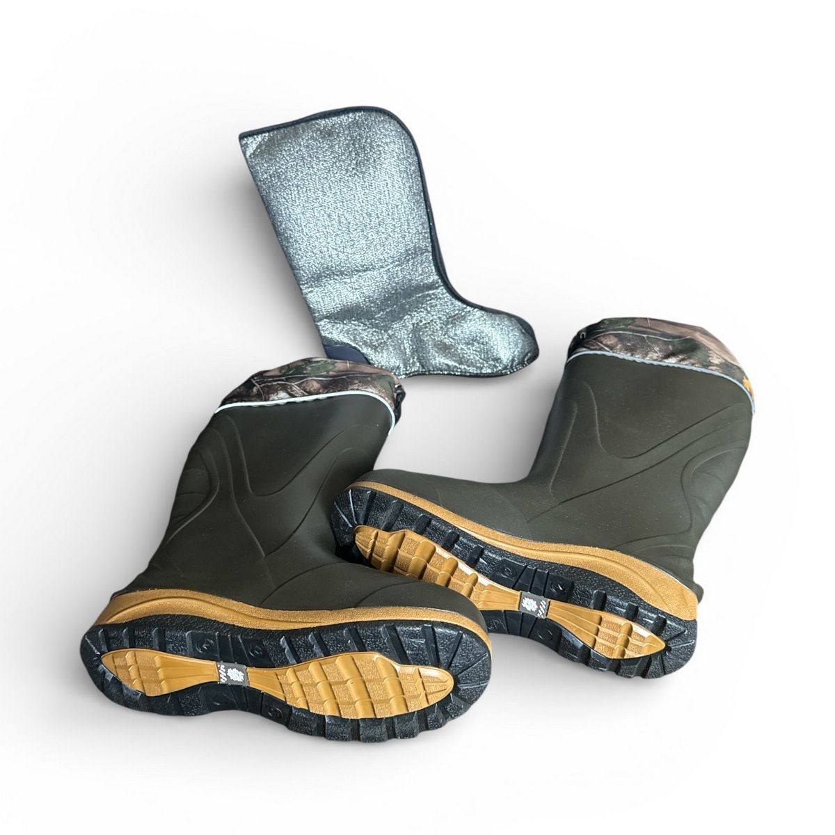Сапоги комплектуются фольгированным вкладышем (носок). Вкладыш сделан из многослойного сэндвича, который работает на защиту от холода, сохранение тепла тела, вывод влаги и удобство движения. С его помощью можно превратить обычные резиновые сапоги в утепленную зимнюю обувь.