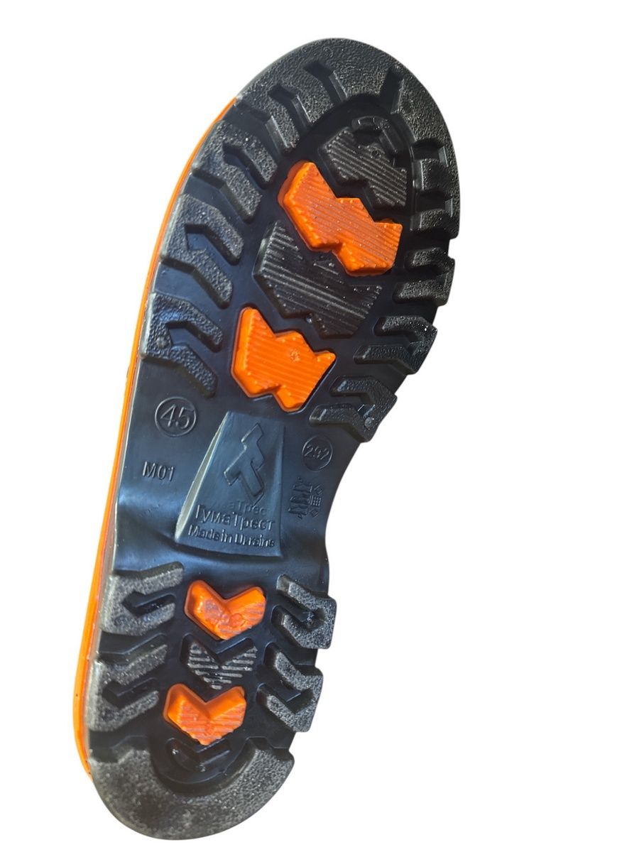 Щільна рифлена підошва виконана методом трикомпонентного лиття - із застосуванням третього додаткового проміжного шару зі спіненого ПВХ, що надає взуття високі амортизуючі, теплозахисні та антистатичні властивості, забезпечуючи комфортність при ходьбі по будь-якій поверхні.