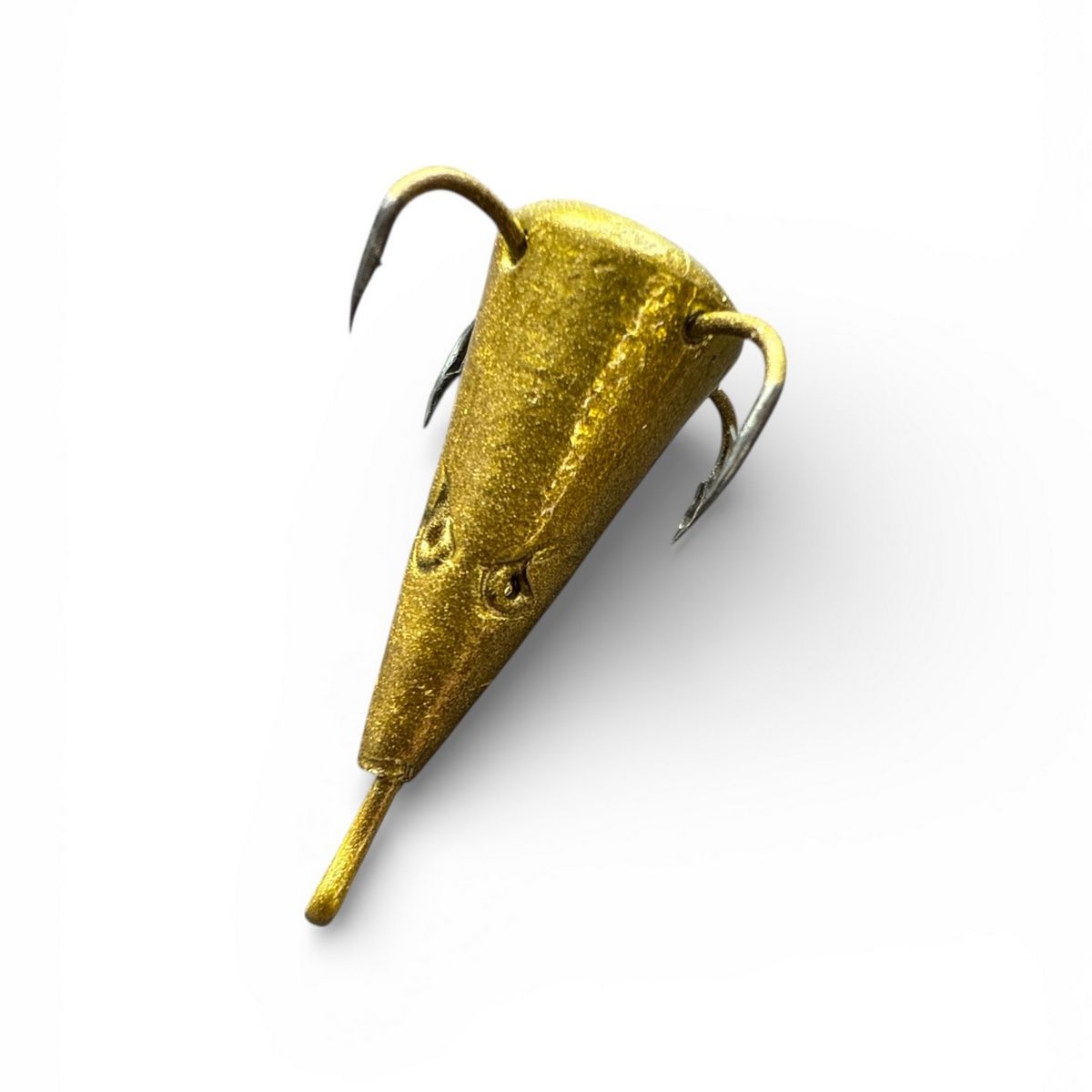 Блешня "Конус великий" від FRY - ефективна вертикальна приманка для стрімкого блешніння в зимовий період. Її конструкція з чотирма гачками (зазвичай у вигляді коромисла або підвісного трійника/четвірника) допомагає збільшити шанси на успішну підсічку.