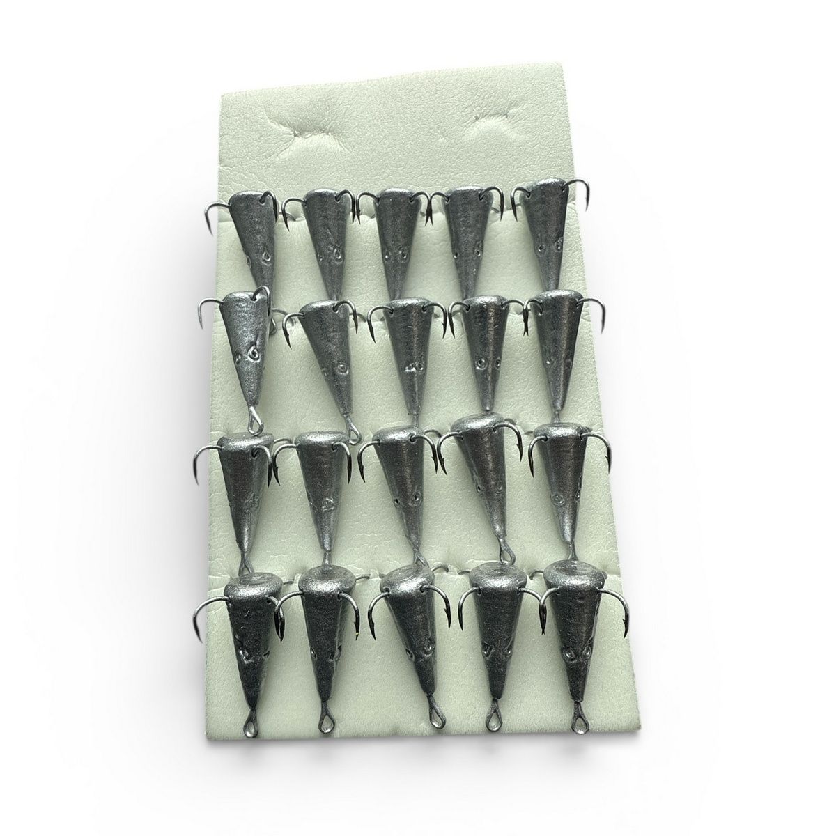 Блешня "Конус великий" від FRY - ефективна вертикальна приманка для стрімкого блешніння в зимовий період. Її конструкція з чотирма гачками (зазвичай у вигляді коромисла або підвісного трійника/четвірника) допомагає збільшити шанси на успішну підсічку.