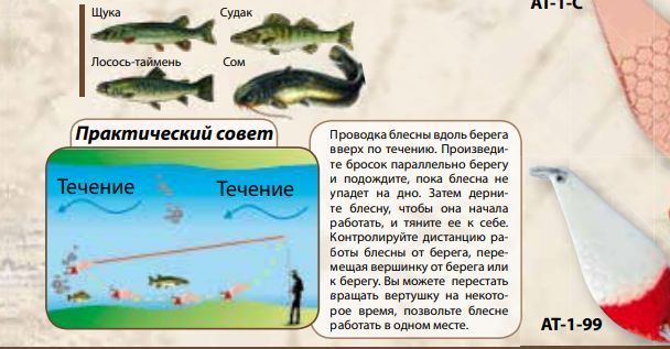 Spinnex Atom супер універсальна блешня. Це чудова приманка для лову щуки, судака, а також тайменю та лосося. Її можна використовувати при різних техніках проводки, пристосовуючи відповідну техніку до умов у місці лову. Під час швидкої проводки та на сильній течії вона починає здійснювати обертальні рухи. При вільній проводці вона працює, здійснюючи маятникові рухи. Здвоєна блешня при проводці створює шумовий ефект.