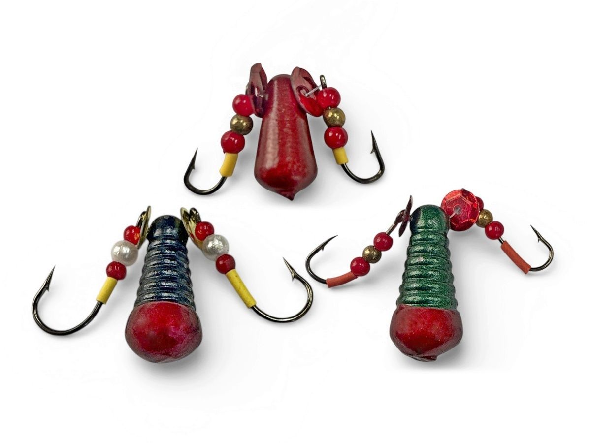 Блешня Яйця від ПрофМонтаж в асортименті 3 кольори: Червоний, Чорно/Червоний, Зелено/Червоний. У блешні використовуються 2 гачки "Cobra".