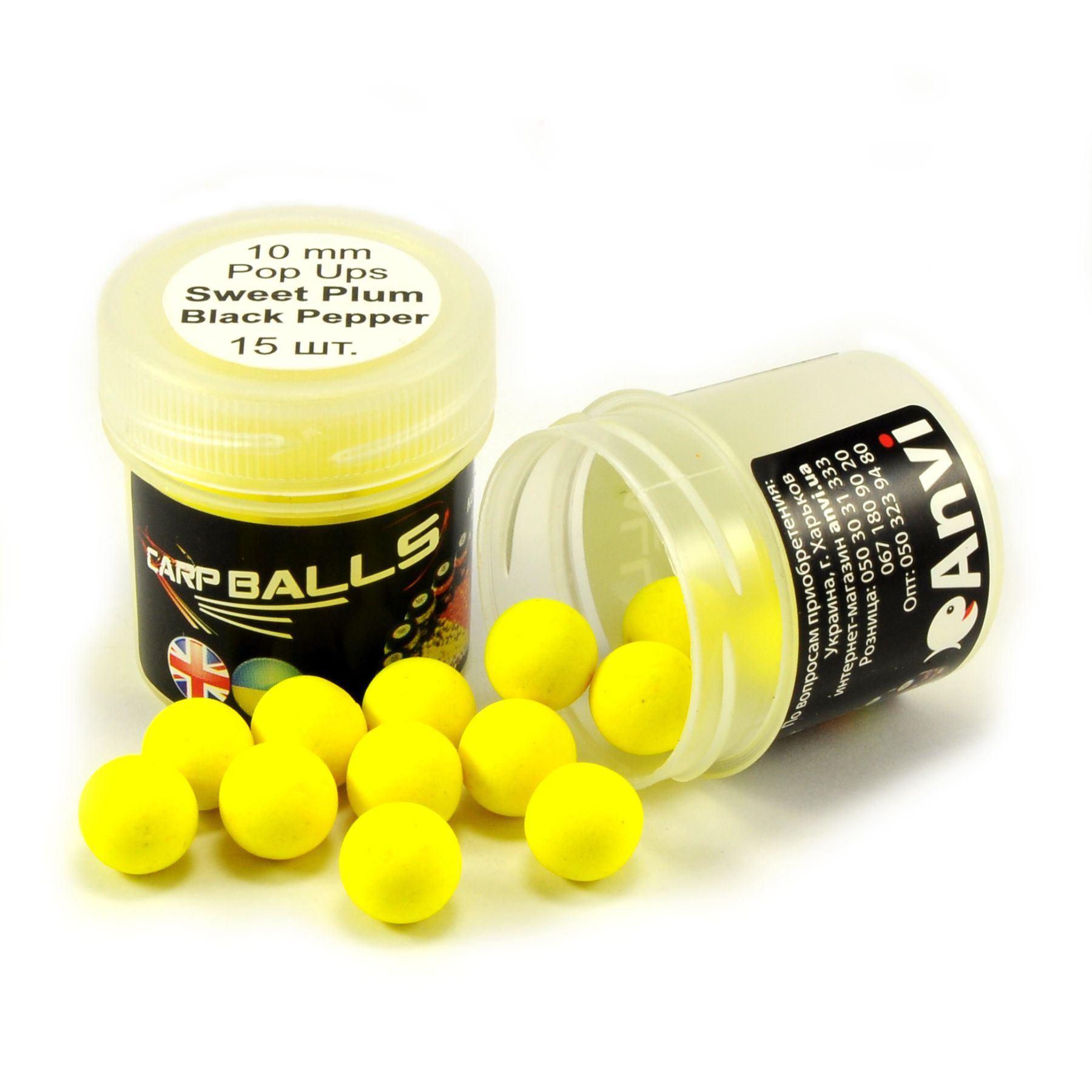 Бойли Carp Balls Pop Ups - Плаваючі - Ø10 мм - 15 шт/уп - Sweet Plum&Black Pepper (Солодка слива та чорний перець)