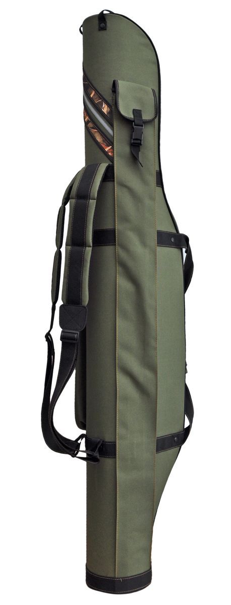 Чохол відрізняється чудовою об'ємністю (може спокійно вмістити чотири спінінгових вудилища з котушками), практичністю і високою зносостійкістю. В процесі виготовлення цієї моделі використовується надійна фурнітура та щільна прогумована тканина, що не висипається.