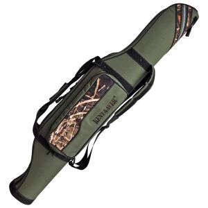 - Особливості: 2 наплічних ременя, водонепроникний, двозамкова застібка-блискавка, кишеня для зберігання стійок, відкривається з двох сторін, перевезення вудлищ без зняття з них котушок, ручка-лямка у верхній частині