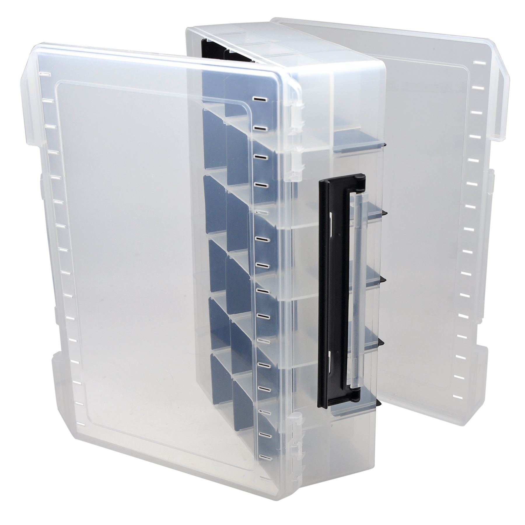 Надійні фіксатори замків, продумана ергономіка. Відкривається з двох сторін. Коробка не боїться ударів. Прозорий корпус дозволяє підібрати потрібний воблер перед її розкриттям. А перегородки допоможуть воблерам уникнути пошкоджень під час транспортування.