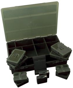 Велика система складається з: коробка з 8 відсіками, коробка з 2 відсіками, 2 коробки з 4 відсіками, 4 міні-коробки з 4 відсіками на клямках, поводочниця та 2 бобіни.