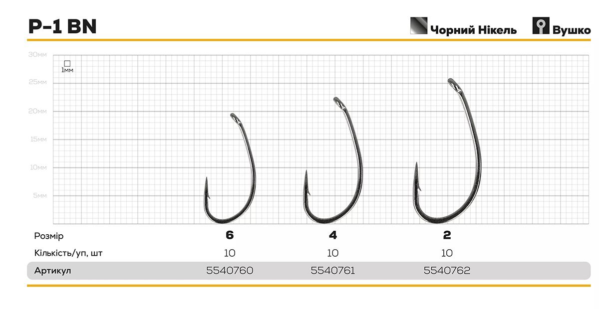 Гачок Hayabusa Carp P-1 BN - Чорний нікель - 10 шт/уп