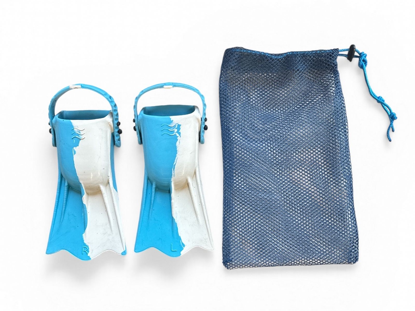Фіксація стопи здійснюється зручною гумкою довжиною 20 см, з 12 отворами для фіксації (по 6 отворів на кожному кінці гумки). У комплекті ласта на ліву та ласта на праву ноги, позначені L та R.