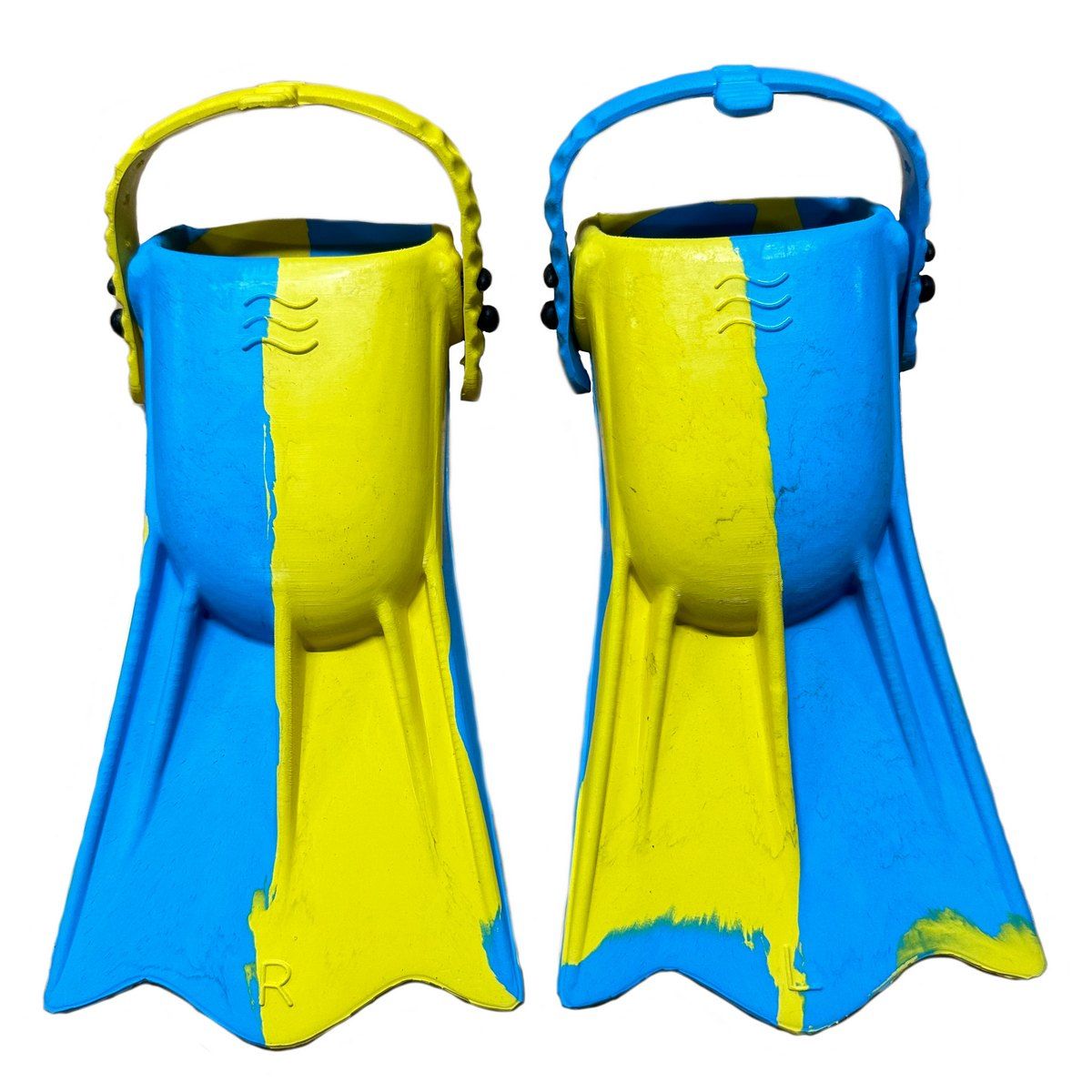 Ласти дитячі для басейну з відкритою п'ятою - Розмір 16,5-22,5 (100-140 мм) - Жовто/блакитні