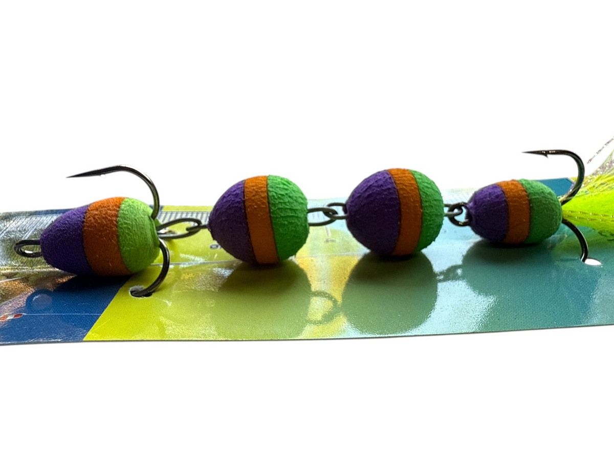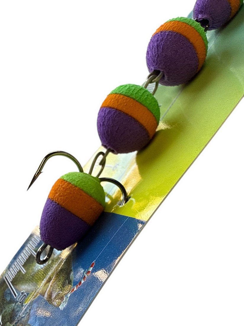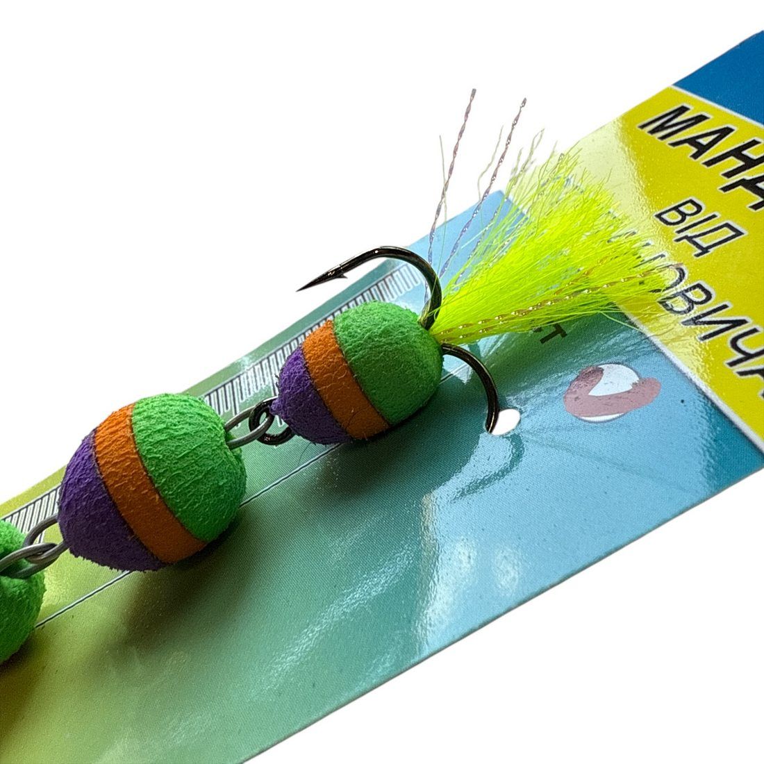 Оснащена двома трійниками Globe №5, які забезпечують надійне засікання риби та мінімізують шанси її зриву та 3 намистинами.