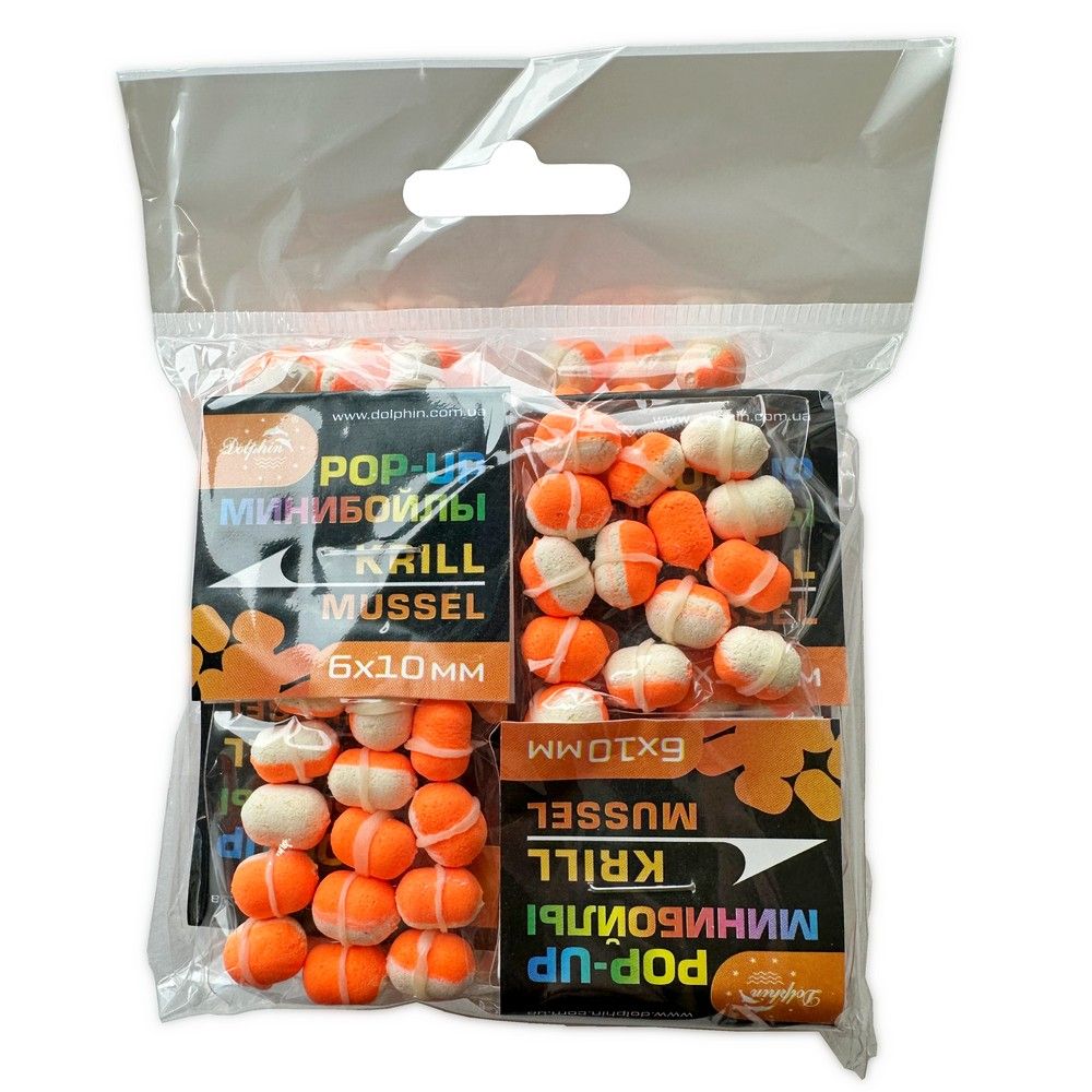 Мінібойли Dolphin - З гумкою - Плаваючі - 6x10 мм - 14 шт/уп - Креветка/Мідія