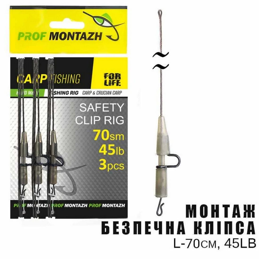 Зазвичай монтаж з безпечною кліпсою використовують у короповому лові в складних умовах, при можливих зачепах вантажу в камінні або гілках - основне оснащення легко вивільняється і можна продовжити виведення трофея.