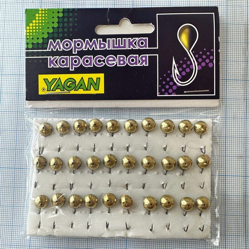 Мормишка карасева для літнього кивка - YAGAN - №5 - Вічко середнє - 1.3 г - Ø8 мм - Гачок Kumho №5 - Золото
