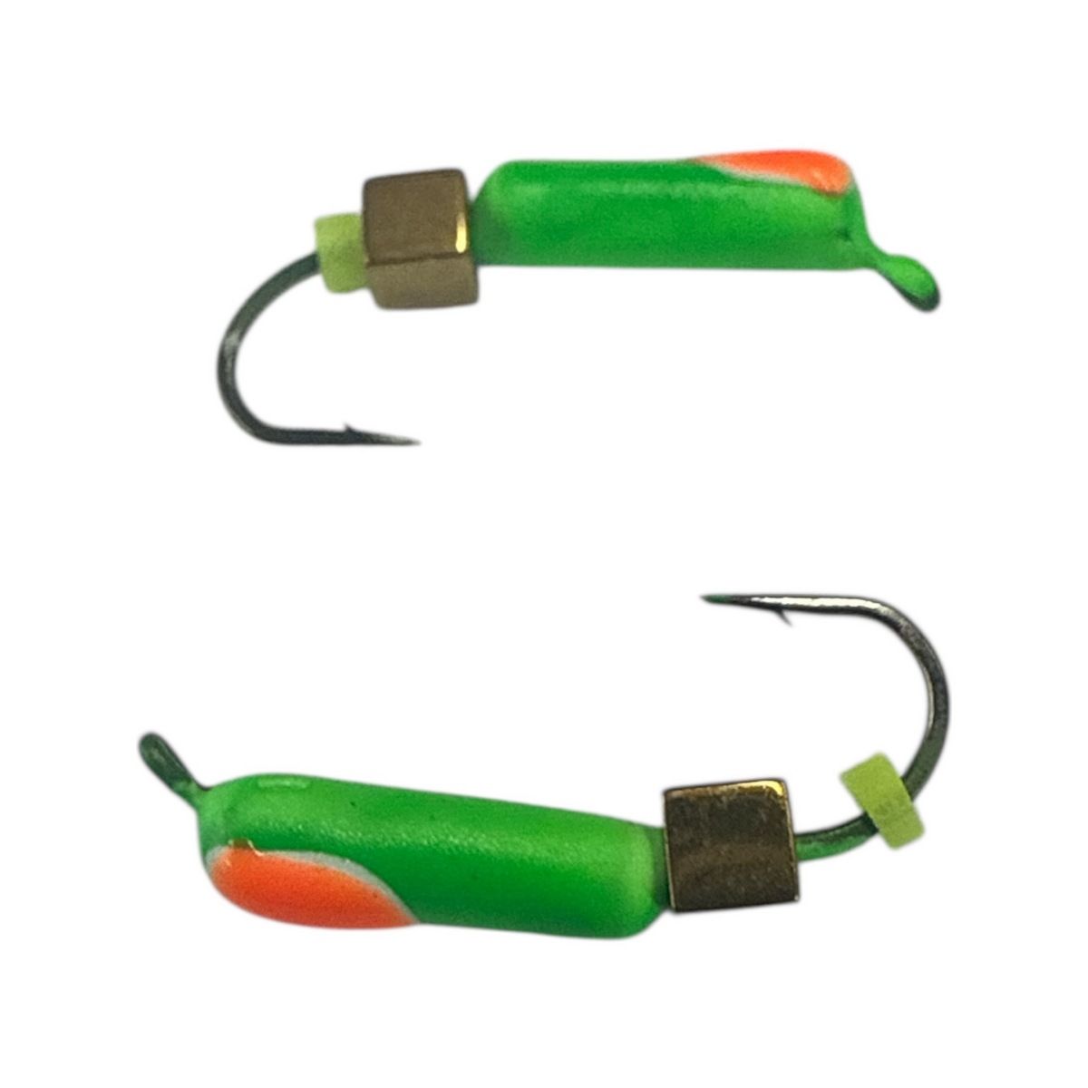 Мормишка Вольфрамова "Латишка" Гвоздик - З кубиком золото - Ø2,2 мм - 0,5 г - Зелений - Латвія