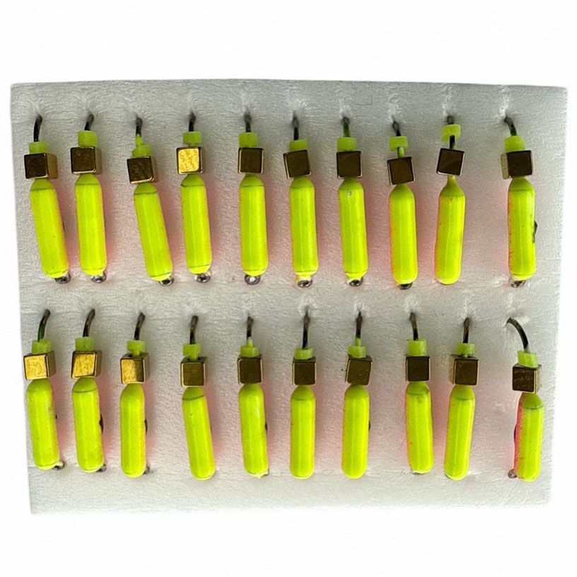 Мормишка Вольфрамова Володимирська Гвоздик - З кубиком золото - 3 мм - 0.5 г - Жовто-червоний з чорною точкою - Арт.594