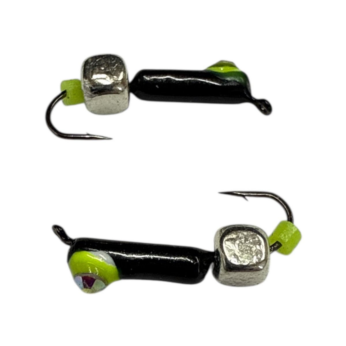 - Мормишка Гвоздик з кубиком працює за тим же принципом, що і з металевою кулькою або намистиною, тільки замість кульки на цівці гачка встановлений металевий куб. Уловистість цієї мормишки така сама, як і у мормишки з кулькою.