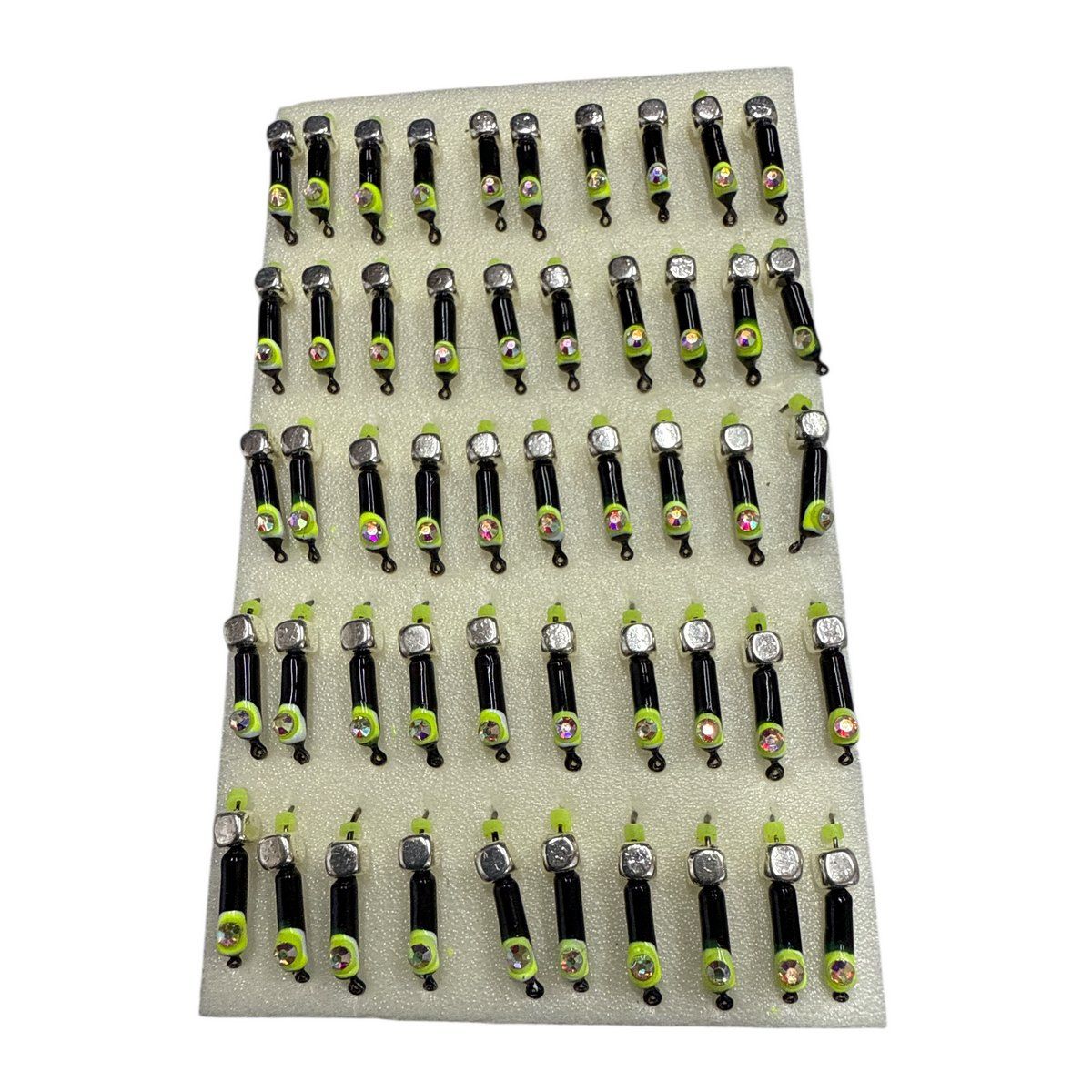Мормишка виконана з вольфраму, завдяки чому при компактних габаритах має велику вагу, тому швидко заглиблюється на необхідну глибину. Приманка дуже міцна та довговічна.