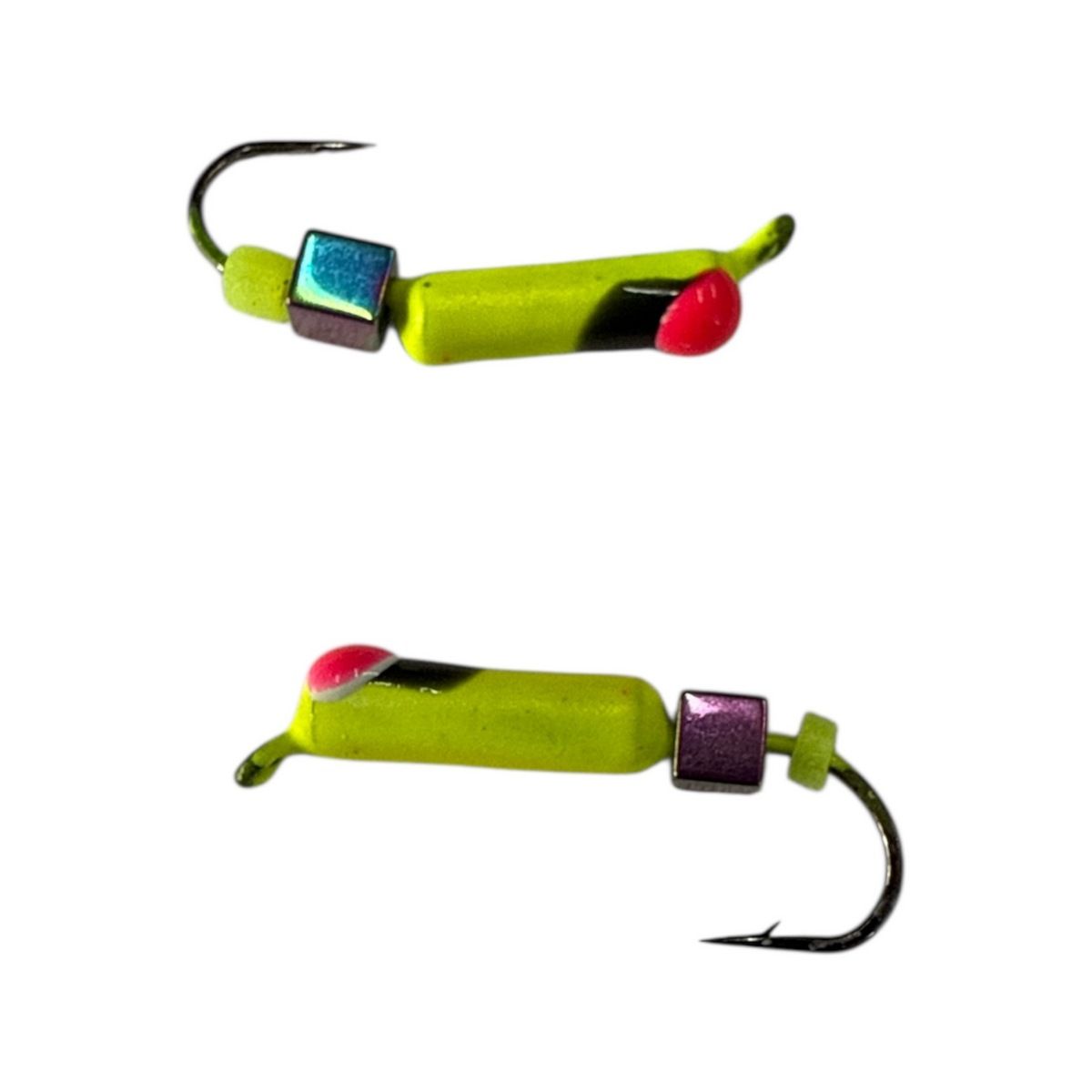 - Мормишка Гвоздик з кубиком працює за тим же принципом, що і з металевою кулькою або намистиною, тільки замість кульки на цівці гачка встановлений металевий куб. Уловистість цієї мормишки така сама, як і у мормишки з кулькою.