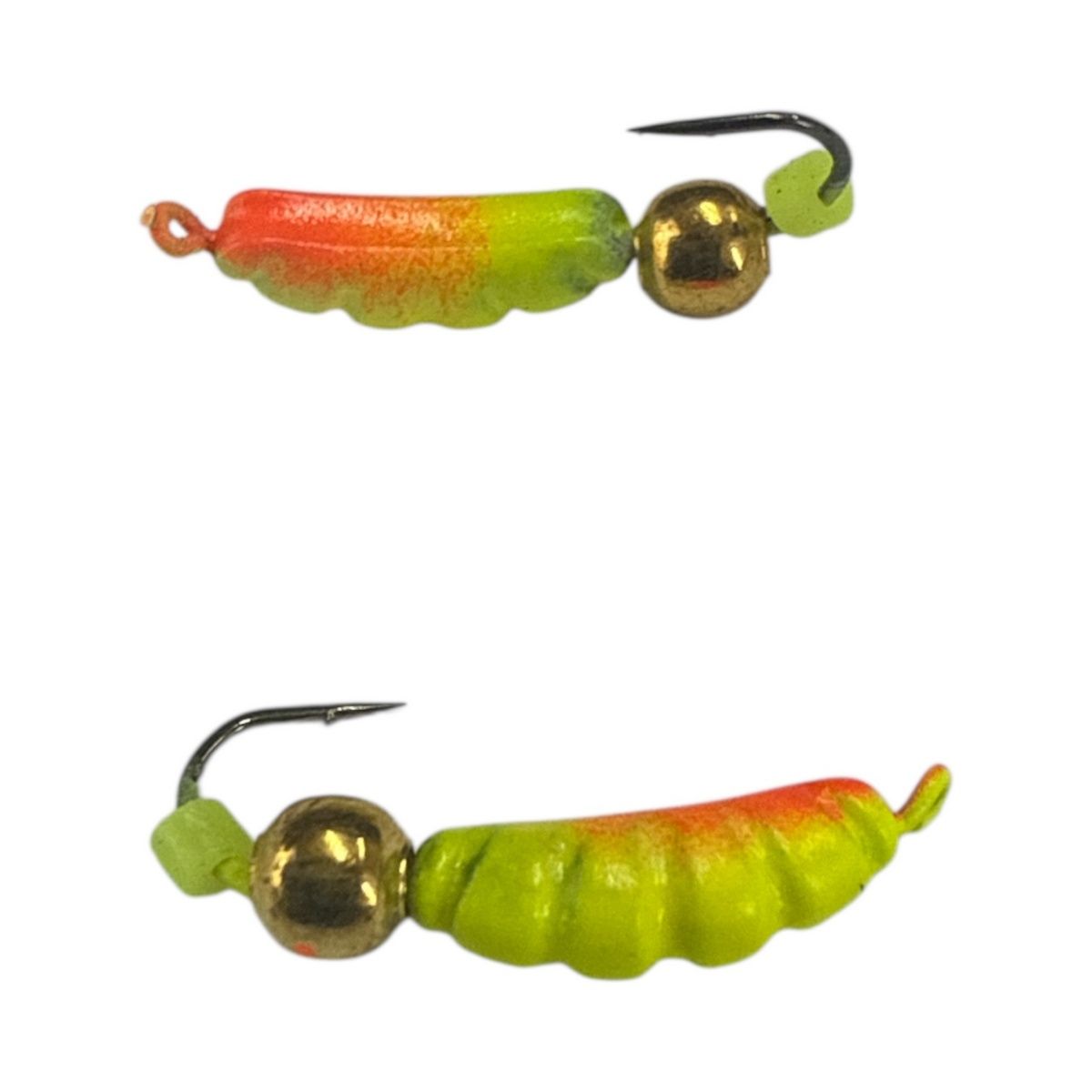 Мормишка Вольфрамова "Латишка" Личинка опариша - З кулькою золото - Ø2,6 мм - 0,6 г - Салатово-червоний - Латвія