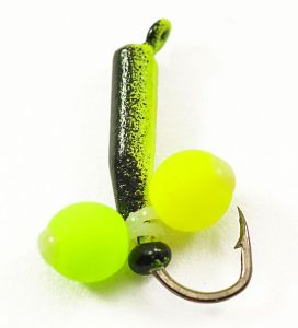 Мормишка Вольфрамова Володимирська "Гвоздик з 2-ма кульками неон жовтий/лайм" - 1,5 мм - 0,3 г - Цв.13 - Арт.461