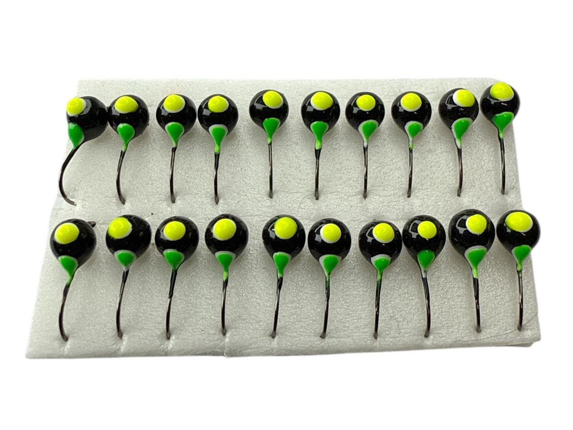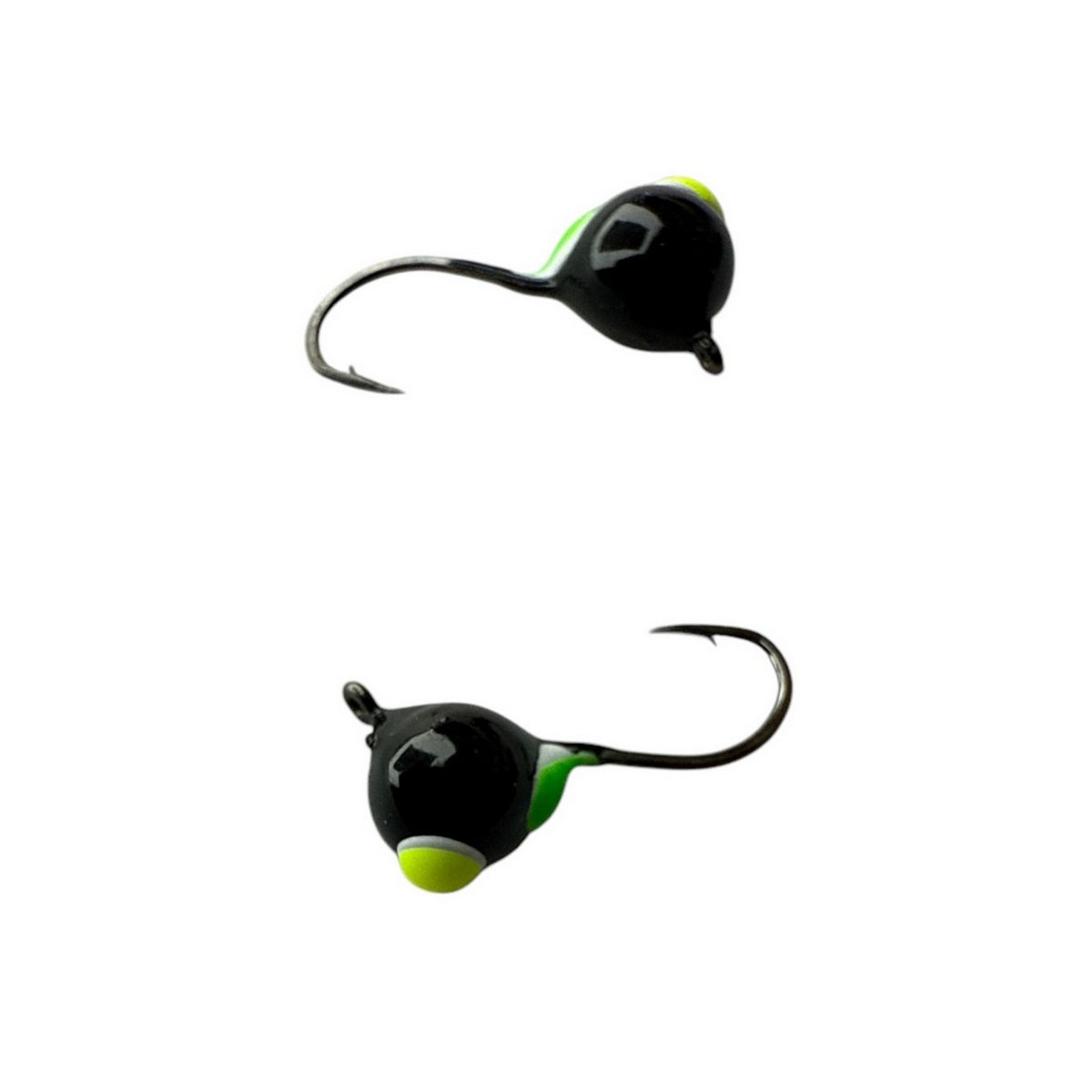 Мормишка Вольфрамова Володимирська Куля Гранена з кембриком - Фарбована - 4 мм - 0.6 г - Чорний з жовтою та зеленою точками - Арт.637
