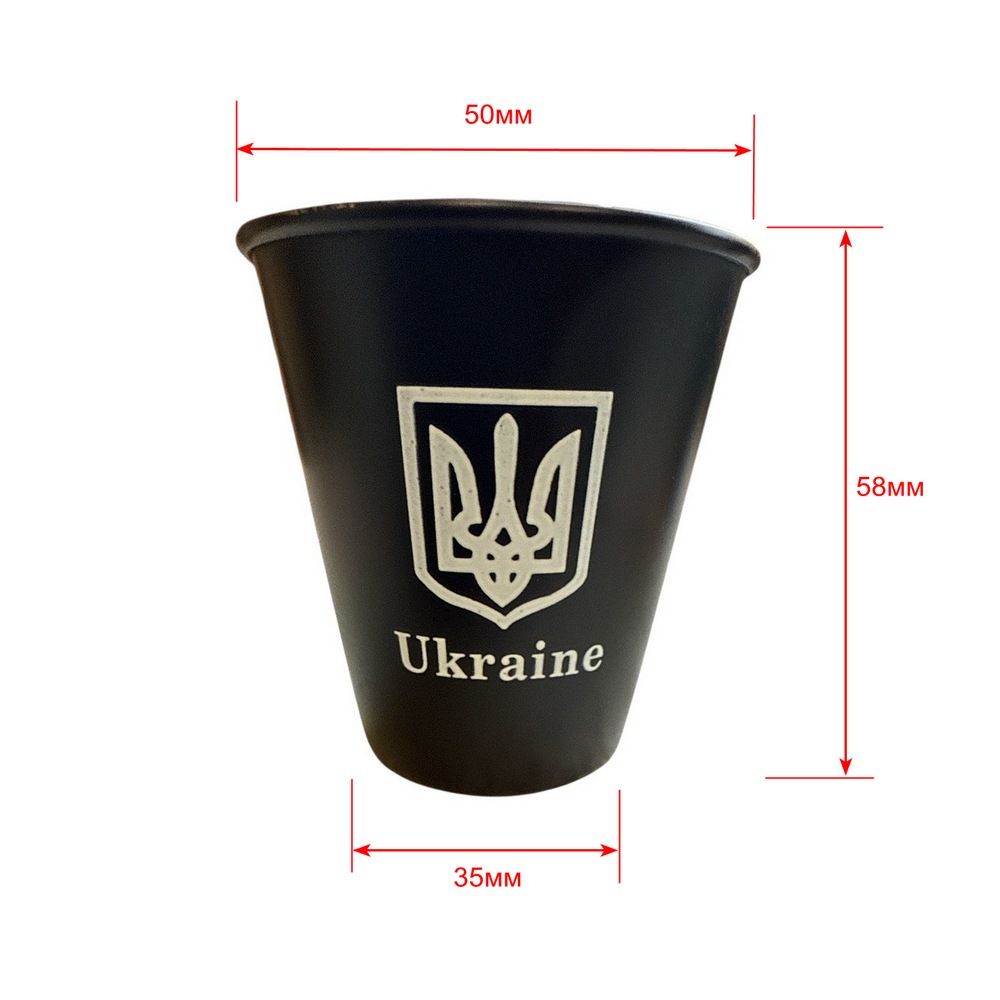 Подарунковий набір "Україна" включає 6 стопок об'ємом 75 мл кожна.Стопки виконані з нержавіючої сталі та обтягнуті екошкірою з нанесеним тризубцем та написом "Ukraine". Запаковані в чохол з екошкіри.