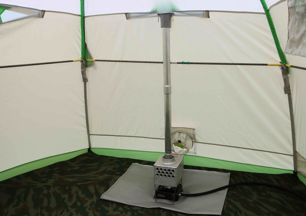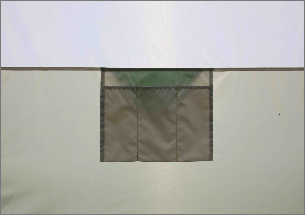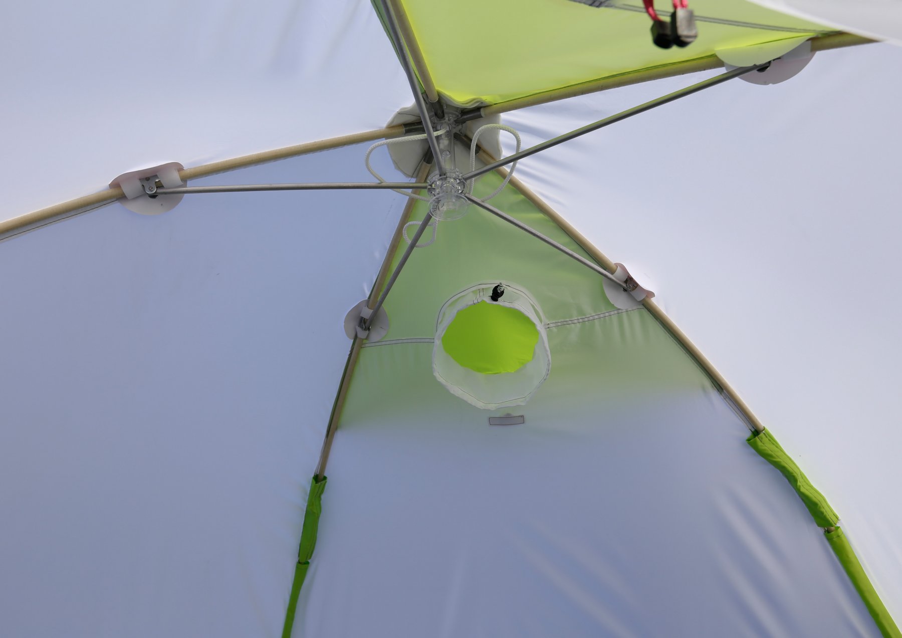 На протилежних від входу стінках розташовані два оглядових віконця з регулювальної планкою. Вікна відкриваються на блискавки №10, що дозволяє використовувати намет при найлютіших морозах. У наметі спеціально не використовуються вшиті прозорі пластикові вікна, які мають обмеження по морозостійкості.