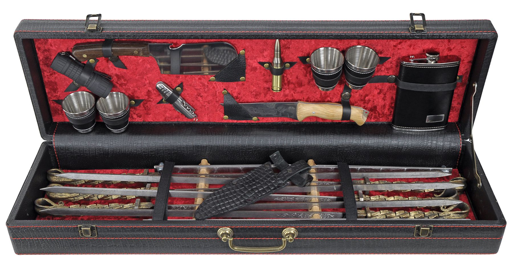 Подарунковий набір шампурів VIP ковка №1 - відмінний подарунок солідному чоловікові! У ньому є все, що необхідно для смачного та комфортного відпочинку на природі "під коньячок і шашличок". У ньому є все, що притаманно дорогому, оригінальному, красивому, статусному, практичному і респектабельному подарунку.
