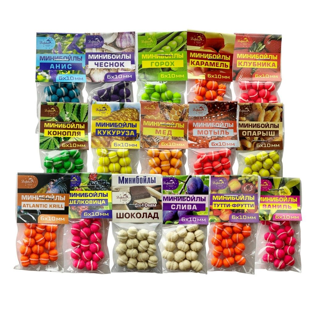 Мини бойлы бывают плавающие и тонущие, выпускаются в диаметрах от 6 до 10 мм и обладают различными вкусами.