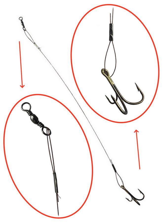 Поводок оснащенный тройником и вертлюгом из стали - продукт, являющийся результатом точного расчета, современных технологий и многолетнего опыта в производстве качественного рыболовного снаряжения.