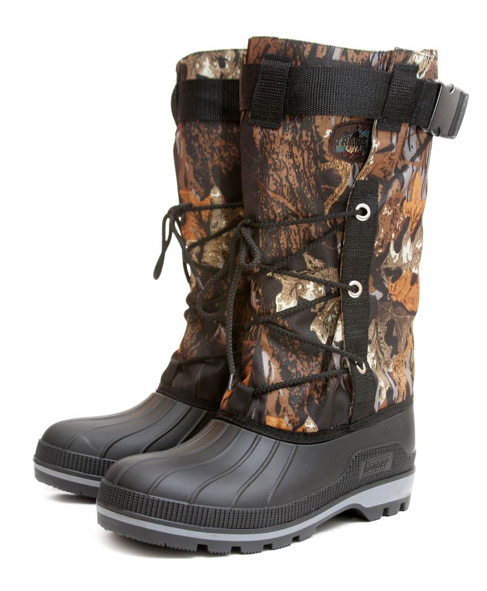 Бахилы для зимней охоты. Низ из прочного морозоустойчивого материала ТЭП. На подошве - антискользящие шипы. Верх - водоотталкивающая ткань. Внутри вкладыш с использованием натуральной шерсти.
