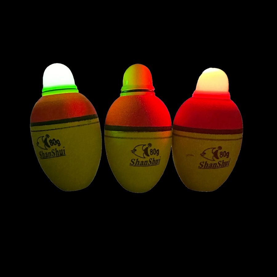 Светящийся LED поплавок для ночной рыбалки. Позволяет ловить рыбу ночью на большом расстоянии благодаря яркому свету. В основном применяется для ловли трофейной рыбы такой как сом или толстолобик. Так же поплавок может использоваться для ловли хищной рыбы на живца.