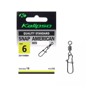 Застежка Kalipso Snap American with swivel предназначена для различных типов оборудований силиконовых приспособлений, как обычного шарнирного монтажа, так и для оснащения дроп-шот или отводного поводка.