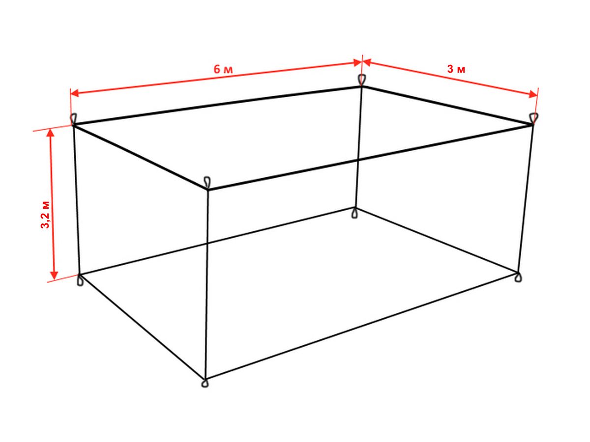 - Розміри ВхДхШ: 3,2х6х3 м