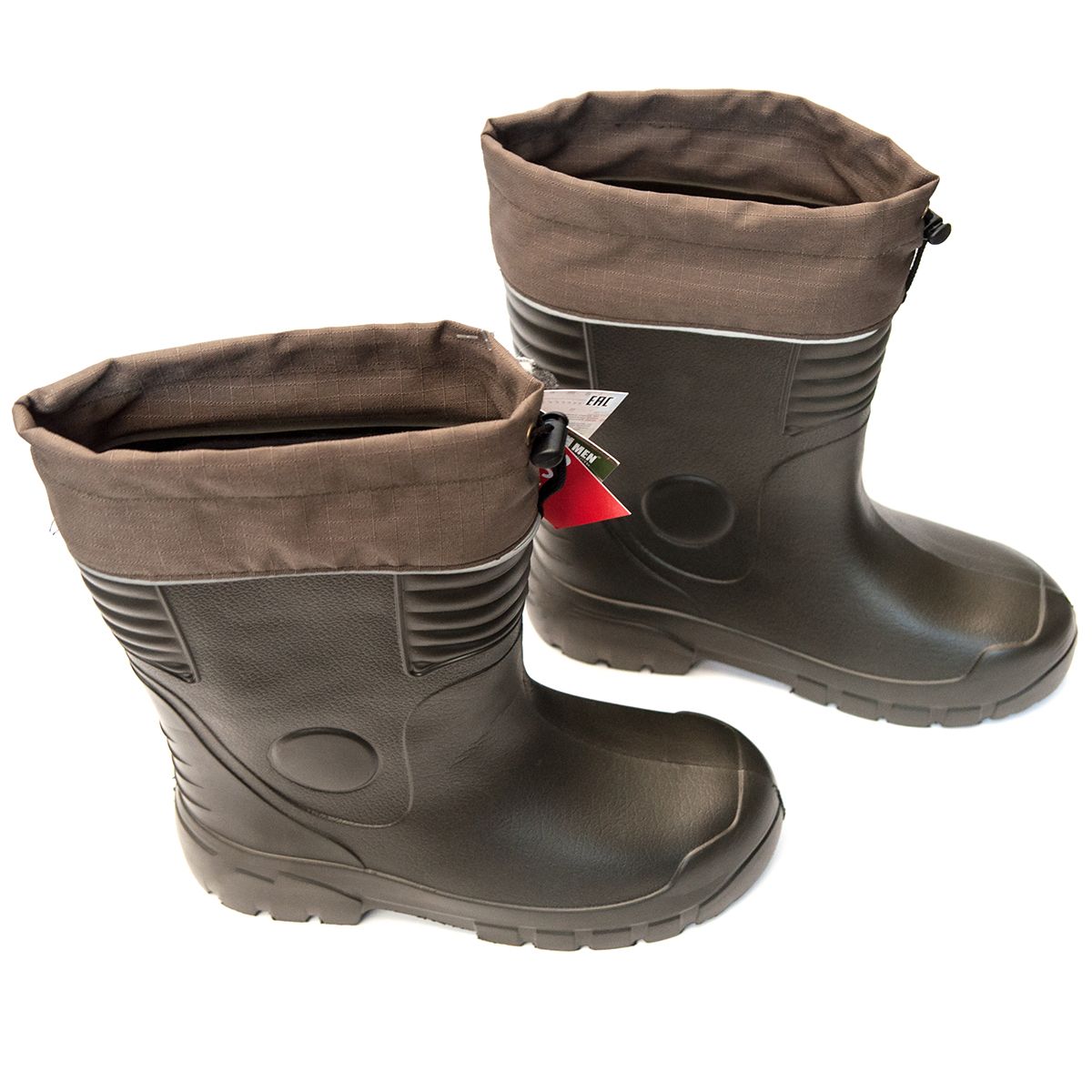 - Дуже легка вага - це головна перевага матеріалу ЕВА, що має спінену пористу структуру. Він значно легше інших матеріалів, які застосовуються у виробництві водонепроникного взуття, таких як каучук, ПВХ або поліуретан.
