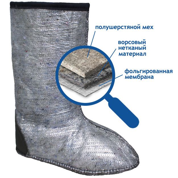 Беручи до уваги зауваження та побажання споживачів модель задумана з досить широкою халявою і з високим підйомом, враховуючи комплектацію багатошаровим теплим вкладишем, що створює "ефект термоса".