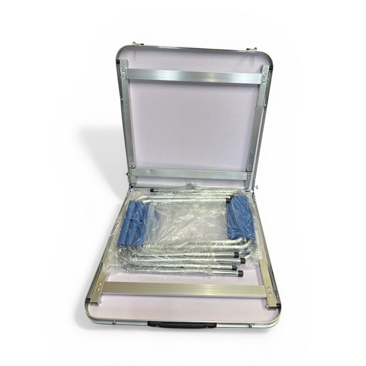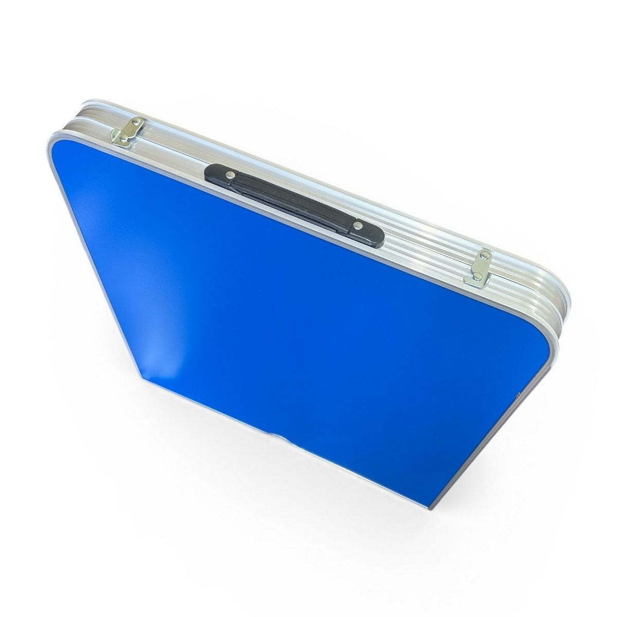 Найкорисніший кемпінговий набір, що дозволяє комфортно розміститися компанії із чотирьох осіб. У цій моделі стільниця і стільці мають практичний синій колір, який чудово виглядає на природі. Конструкція дуже стійка, а матеріали виготовлення довговічні, тому можна застосовувати ці складні меблі протягом усього року.