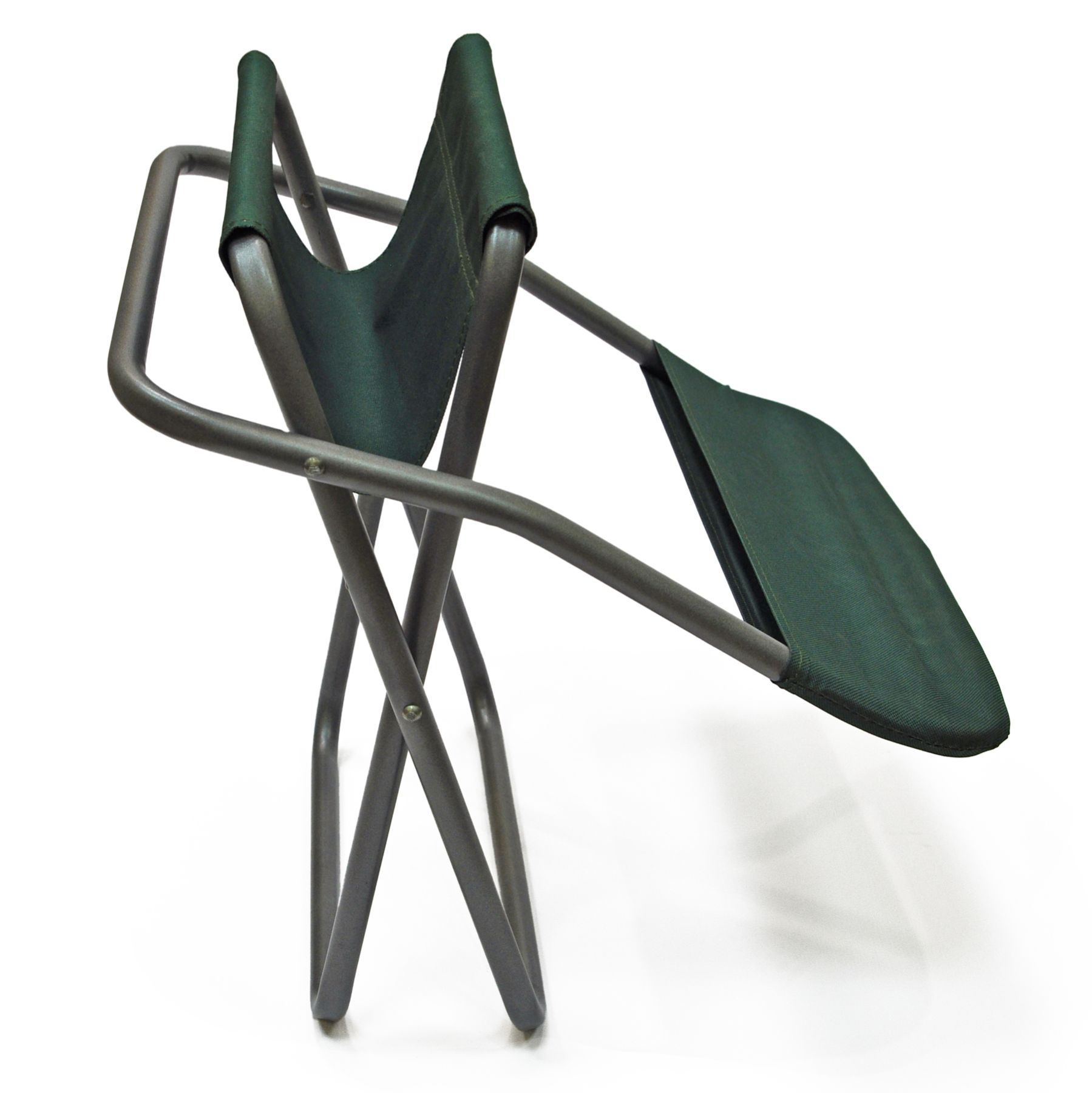 Простий, надійний розкладний стілець з металевих труб діаметром 18мм і міцної тканини.