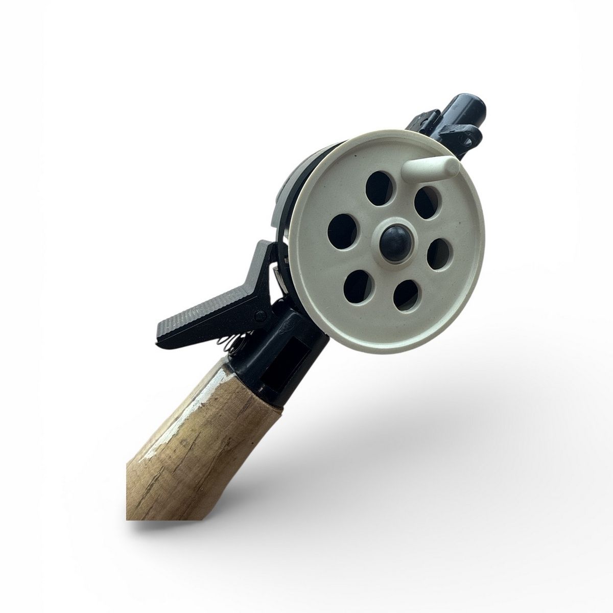 Ергономічна пробкова ручка добре лежить у руці, не холодить долоню та забезпечує впевнений хват навіть у морозну погоду. Курок працює плавно, забезпечуючи точний контроль спуску та підйому оснастки, що робить вудку зручною як для лову на мормишки, так і для лову на невеликі блешні.
