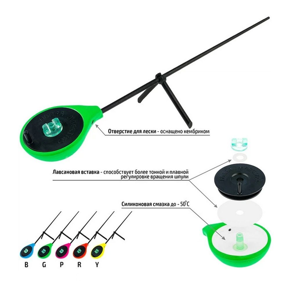 Механізм обертання шпулі простий, але надійний – дві пластикові прокладки та затисна гайка. В отвір для жилки на корпусі вставлений кембрик, який не дає врізатися їй в пінопласт під навантаженням.