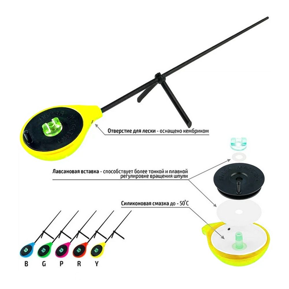 Вудка зимова Akara Universal PK виконана з міцного пінопласту у п'яти кольорах (зелений, червоний, жовтий, рожевий, синій). Корпус котушки компактний і обтічний, вудка дуже зручно лежить у руці.